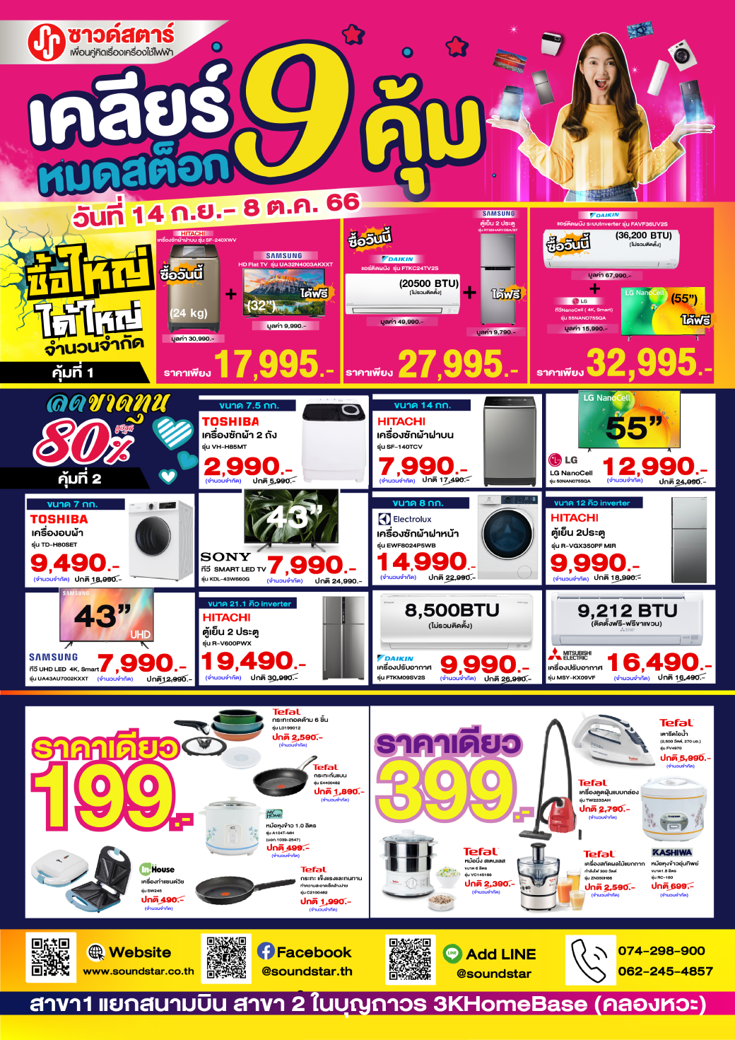 ราคาสุดช็อก ถูกสุดในรอบปีโปรโมชั่นคลียร์หมดสต็อก รับ 9 คุ้ม วันที่ 14 ก.ย. - 8 ต.ค. 256